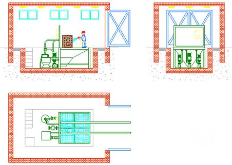 ![]() 液體式噴砂房工作原理平面圖 |